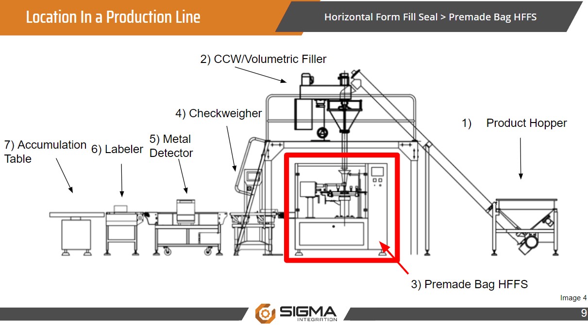 Premade bag HFFS machines take pouches, open them up and dispense product into them. This equipment is capable of handling a variety of different products, including liquids, powders, granules, sauces and meats.