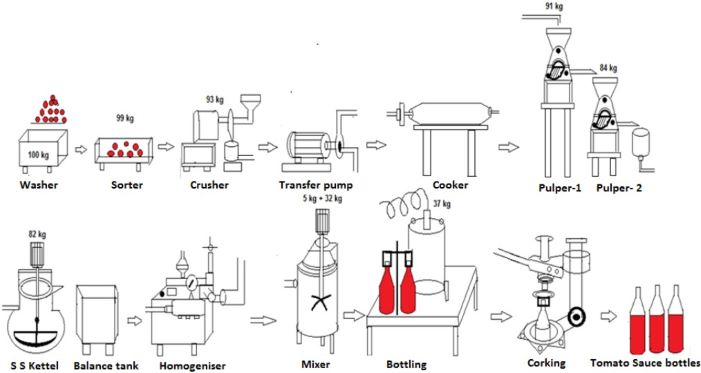 Below is an example of where a kettle would be positioned in a tomato sauce production line.